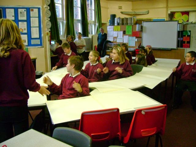 Students at Sir Robert Hitcham’s Primary School in Suffolk write their secret wartime message. |